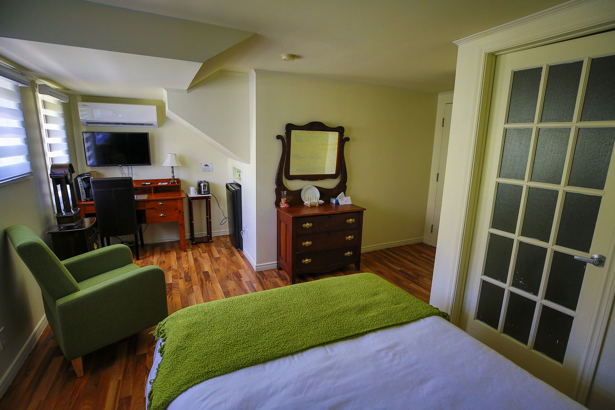 Charming room with a double bed and a view of the garden, it includes a refrigerator, a coffee maker and a television. The full bathroom offers essential bath products as well as a hair dryer.