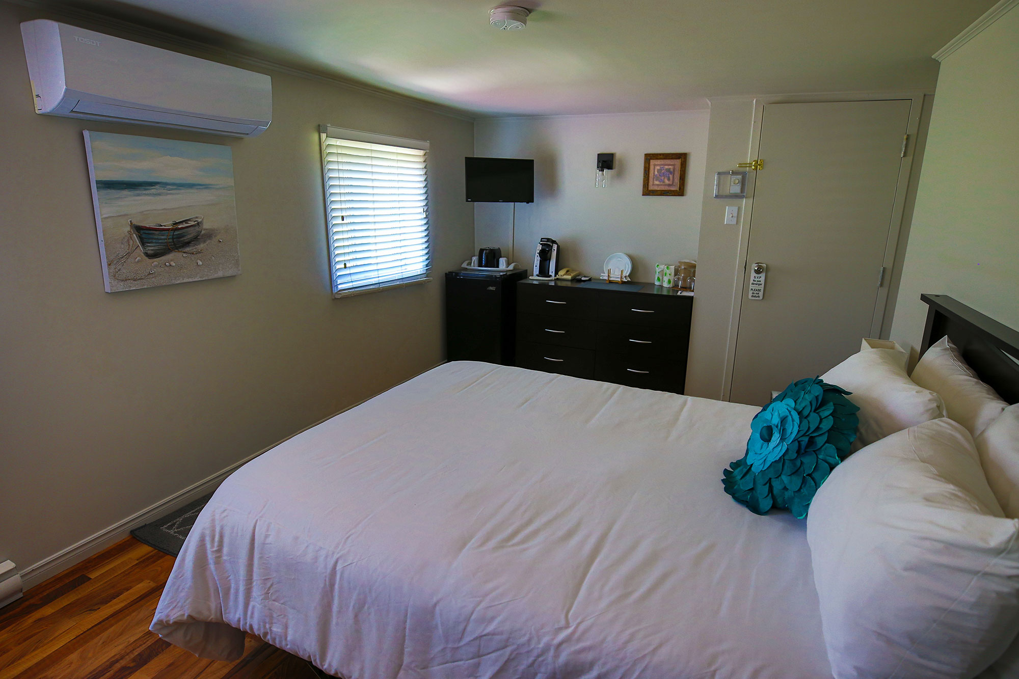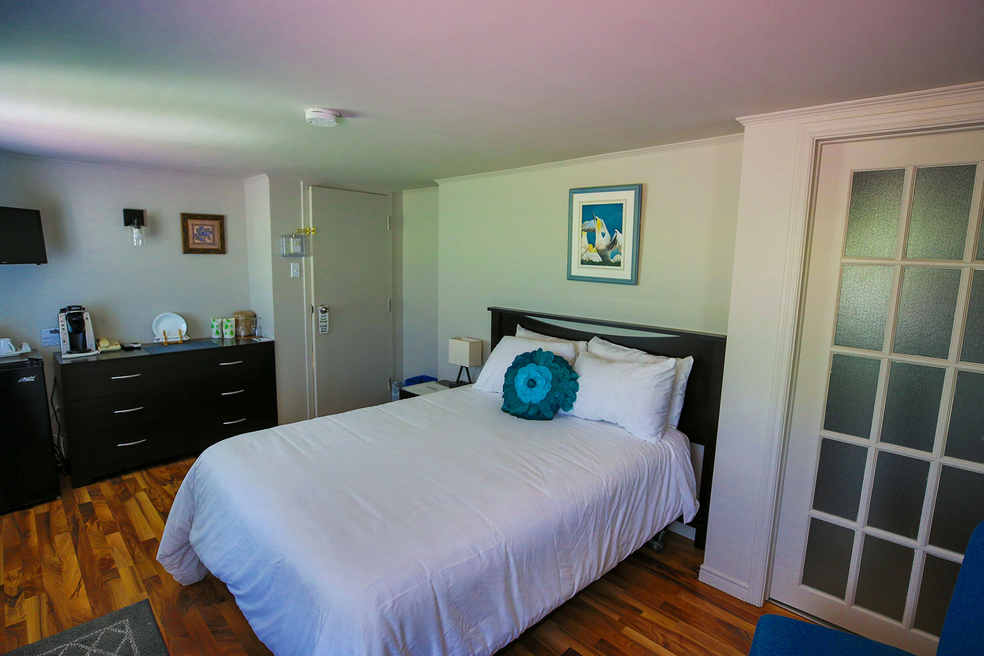 Beautiful room with one double bed and garden view. It includes a refrigerator, a coffee maker and a television. The full bathroom has all the necessary toiletries and a hair dryer.